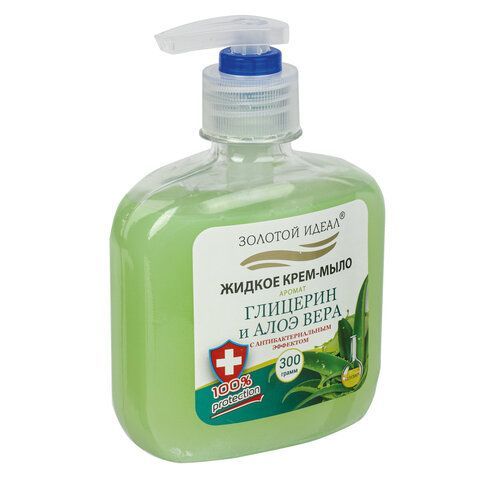 Мыло жидкое крем 300мл с дозатором антибактериальное Глицерин и алоэ вера ЗОЛОТОЙ ИДЕАЛ 1/12 купить в Москве по низкой цене оптом и дешево с доставкой