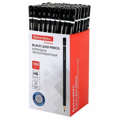 Карандаш ч/гр НВ черный заточ. карт. упак. BRAUBERG Fine Line Файн Лайн 1/100/3000 купить оптом и в розницу в Москве