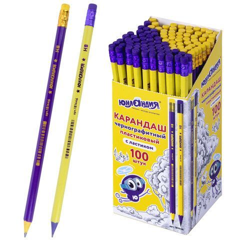Карандаш ч/гр НВ пластиковый корпус ассорти с резинкой Юнландия 1/100 купить оптом и в розницу в Москве