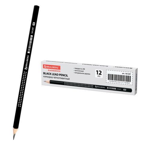 Карандаш ч/гр HB трехгранный, черный с рисунком, без резинки BRAUBERG Black&White 1/12/144 купить оптом и в розницу в Москве