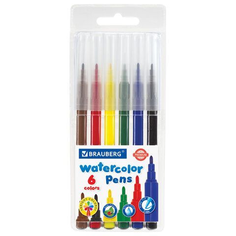Фломастеры 06цв классические, вент. колпачек, европодвес BRAUBERG PREMIUM 1/48 купить оптом и в розницу в Москве