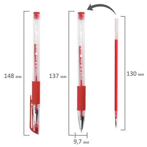 —Ручка гелевая красная 0,5мм резиновый держатель STAFF 1/12/1728