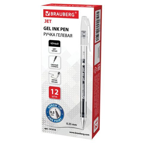 Ручка гелевая черная 0,5мм линия 0,35мм BRAUBERG 1/12/1728 купить оптом и в розницу в Москве