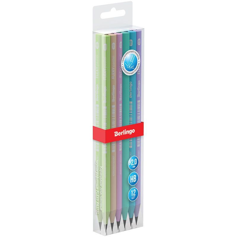 —Карандаш ч/гр HB пластик, трехгранный, заточен BERLINGO Flexy Pastel 1/12/144