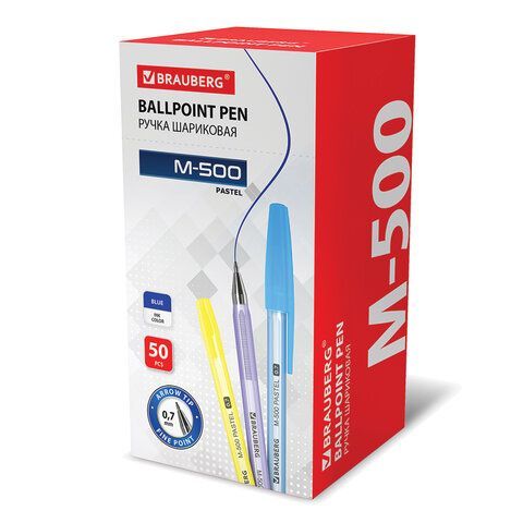 Ручка шариковая синяя узел 0,7мм корпус ассорти BRAUBERG M-500 PASTEL 1/50