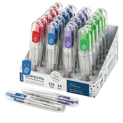 Циркуль 125мм для средних классов GLOBUS металлический, цвет ассорти, чехол ПВХ 1/24/48 купить оптом и в розницу в Москве