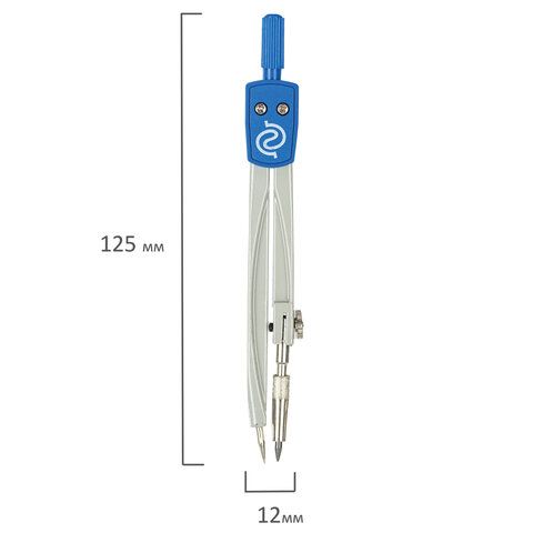 Циркуль 125мм для средних классов GLOBUS металлический, цвет ассорти, чехол ПВХ 1/24/48