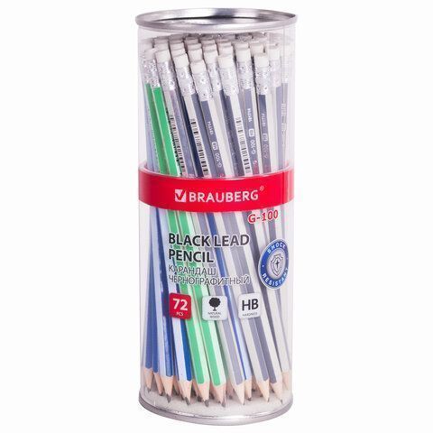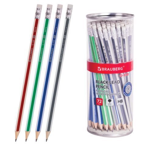 Карандаш ч/гр НВ с ластиком дерево корпус ассорти G-100 BRAUBERG 1/72 купить оптом и в розницу в Москве