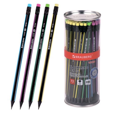 —Карандаш ч/гр BRAUBERG "VIVID", 1 шт., HB, с ластиком, корпус ассорти 1/72