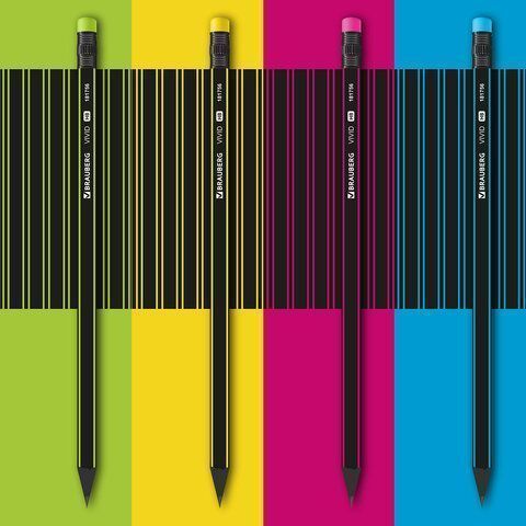 Карандаш ч/гр BRAUBERG "VIVID", 1 шт., HB, с ластиком, корпус ассорти 1/72 купить оптом и в розницу в Москве