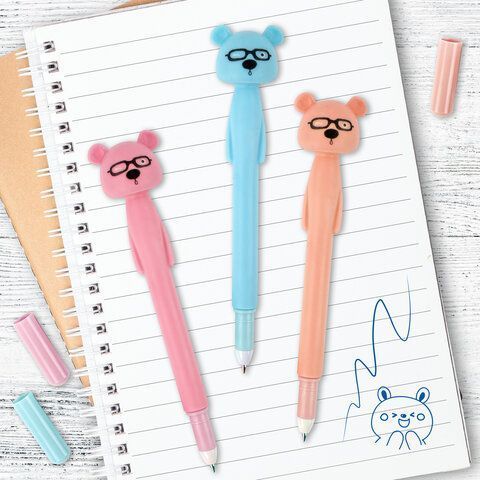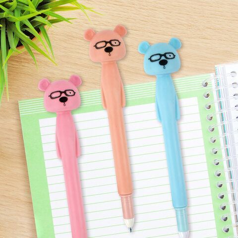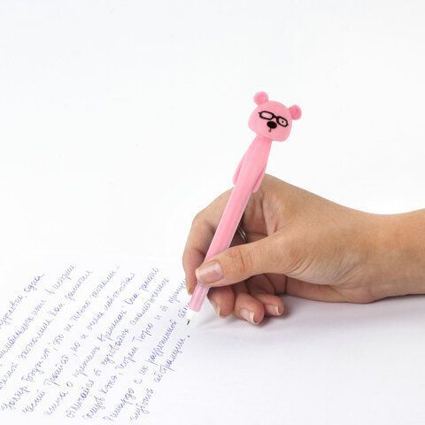 Ручка фигурная МИШКА мягкий корпус 0,35мм, синяя купить оптом и в розницу в Москве