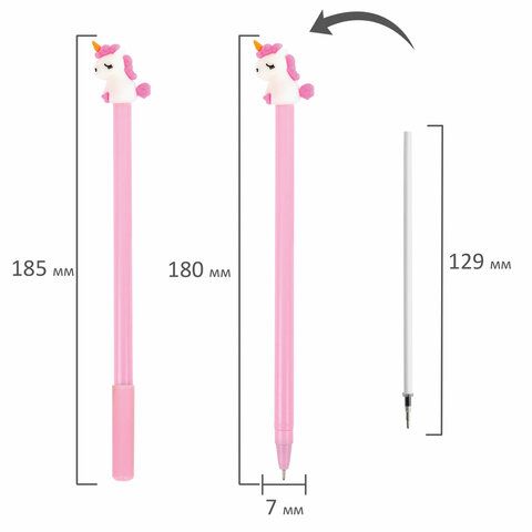 —Ручка шариковая синяя узел 0,7мм с топпером ЮНЛАНДИЯ Единорог 1/12