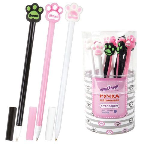 Ручка с топпером шариковая ЮНЛАНДИЯ Лапка корпус ассорти СИНЯЯ узел 0,7мм 1/12 купить оптом и в розницу в Москве