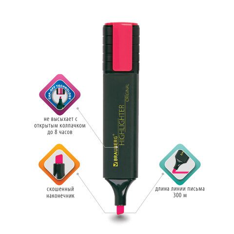 Текстмаркер розовый 1-5 мм скошенный наконечник BRAUBERG ORIGINAL 1/12/576 купить оптом и в розницу в Москве