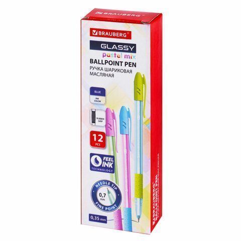 —Ручка шариковая синяя масляная ассорти BRAUBERG GLASSY 1/12