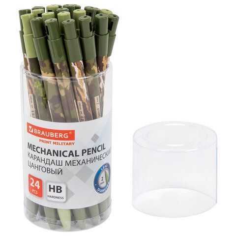 —Карандаш ч/гр HB механический c точилкой BRAUBERG MILITARY 1/24