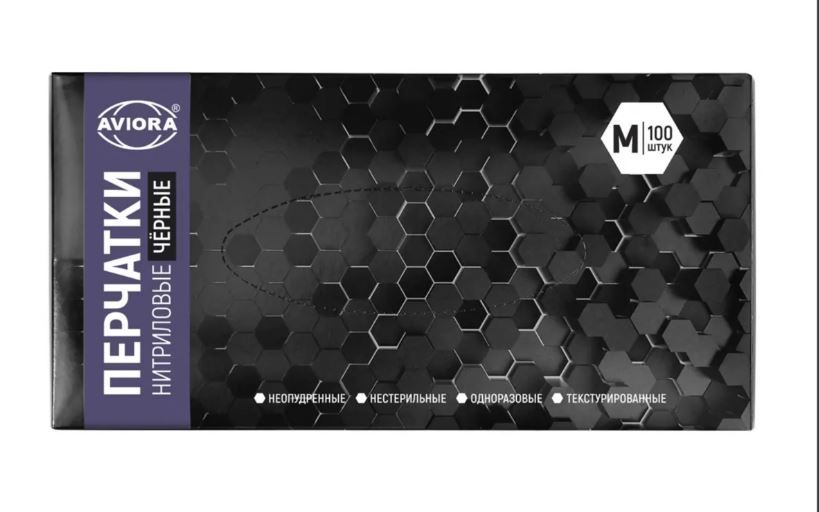 Перчатки смотровые нитриловые неопудренные Aviora черные M 4гр 50/500 купить оптом и в розницу в Москве с доставкой
