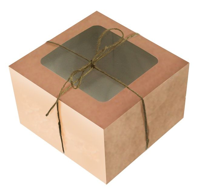 Коробка для бенто торта с окном 160х160х110мм картонная бурая 25/25 купить оптом и розницу с доставкой в Москве